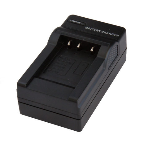 De oplader is compacter dan die van Fujifilm, maar verder is de werking identiek. Aan de onderzijde van de oplader steekt een opklapbare stekker uit die rechtstreeks in het stopcontact past. Uiteraard kunnen originele Fujifilm batterijen er ook mee opgeladen worden.