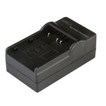 De oplader is compacter dan die van Olympus, maar verder is de werking identiek. Aan de onderzijde van de oplader steekt een opklapbare stekker uit die rechtstreeks in het stopcontact past. Uiteraard kunnen originele Olympus batterijen er ook mee opgeladen worden.