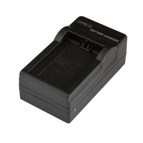 De oplader is compacter dan die van Canon, maar verder is de werking identiek. Aan de onderzijde van de oplader steekt een opklapbare stekker uit die rechtstreeks in het stopcontact past. Uiteraard kunnen originele Canon batterijen er ook mee opgeladen worden.