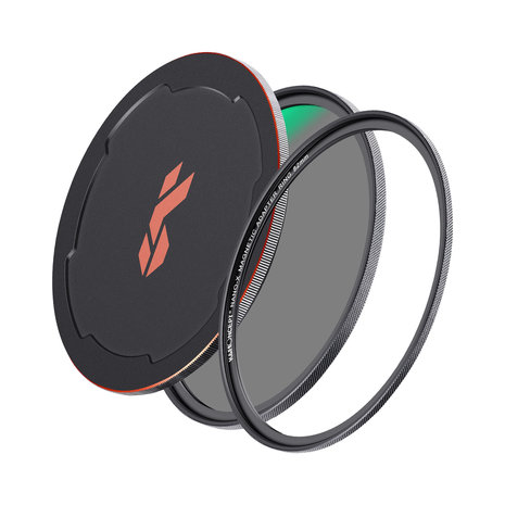 Door de magnetische installatie kan het filter binnen 1 seconde op de lens geplaatst worden. De set bestaat uit een magnetische ring die je op de lens draait, het filter en een beschermende lenskap. De zonnekap van je lens hoeft er dus niet meer af.