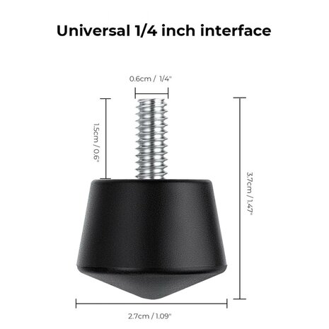 Deze statiefvoetjes draai je met het 1/4 inch (0.6 cm) schroefdraad onderin de poten van je statief.