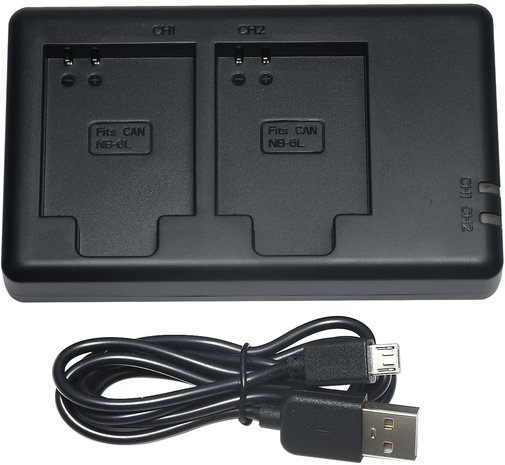 NB-6LH USB duolader van het merk DSTE gemaakt voor Canon. Hiermee kan je je camerabatterijen in elke USB-aansluiting opladen, bijvoorbeeld met behulp van een computer, laptop of powerbank, zelfs op zonne-energie. Met een USB adapter (niet meegeleverd) past de oplader uiteraard ook in het stopcontact of de 12V-aansluiting van je auto.
